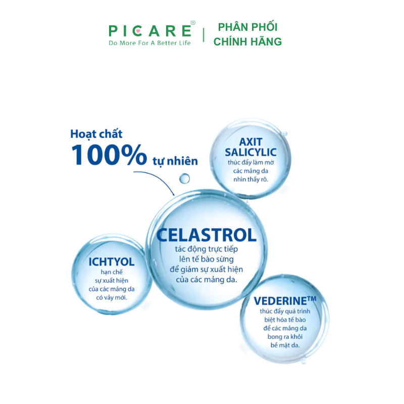 Lưu huỳnh dạng vi thể: Điều tiết lớp sừng, hỗ trợ làm sạch mảng gàu.