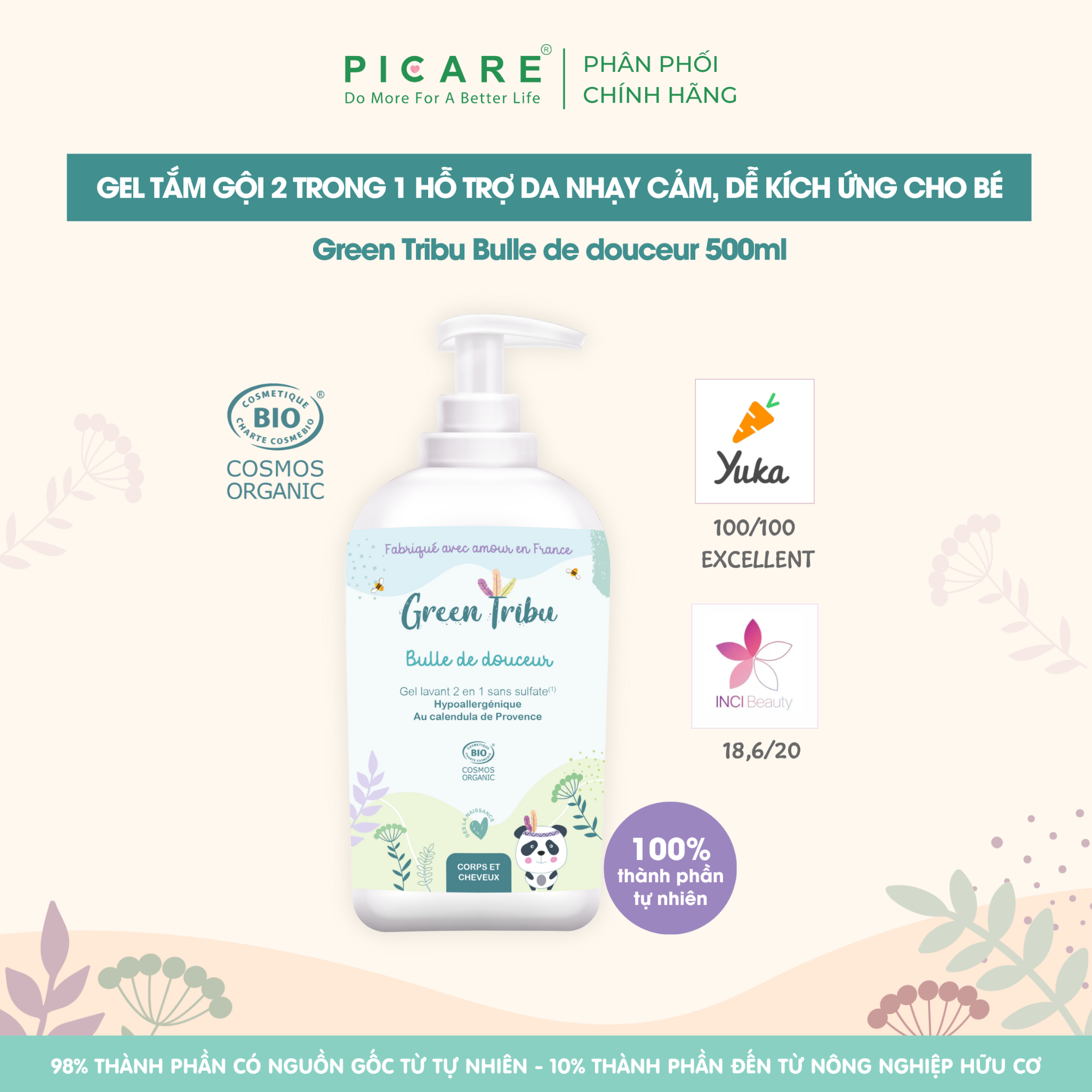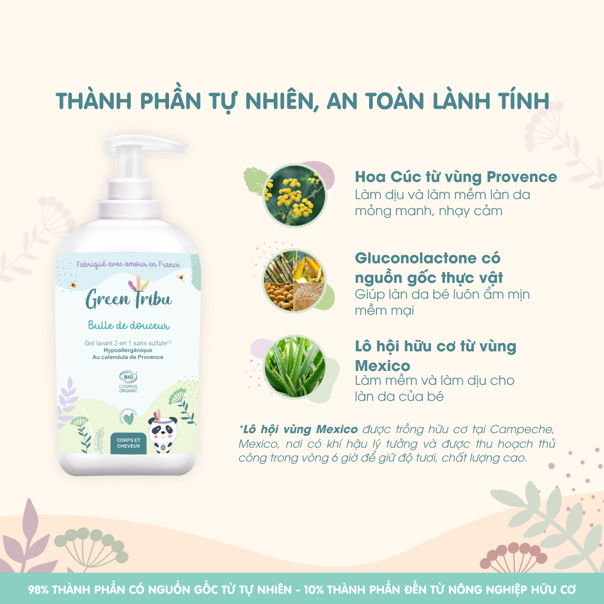 - 100% thành phần tự nhiên, không hương liệu, được kiểm nghiệm da liễu.