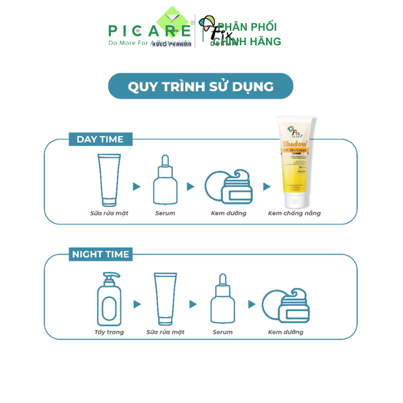 Fixderma Shadow Cream SPF 50+ là dòng kem chống nắng vật lý lai hóa học với khả năng bảo vệ làn da khỏi tác hại của tia UV, đồng thời giữ ẩm nhẹ nhàng cho da nhạy cảm. Công thức an toàn, phù hợp cho cả người lớn và trẻ em – Picare là nhà phân phối chính hãng sản phẩm Fixderma tại Việt Nam.