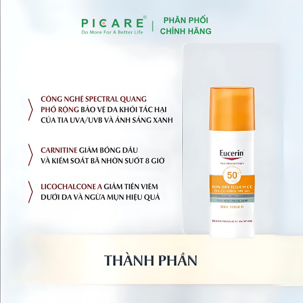 EUCERIN SUN CREME TINTED CC FAIR SPF50+ – KEM CHỐNG NẮNG CÓ MÀU DỊU NHẸ PHÙ HỢP DA NHẠY CẢM – 50ML