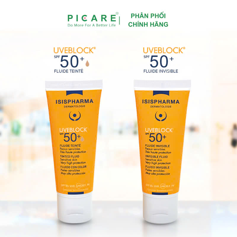Kem chống nắng Uveblock SPF50+ Tinted Fluid từ Isis Pharma là sản phẩm chuyên biệt dành cho da nhạy cảm, dễ kích ứng. Với chỉ số bảo vệ cao SPF50+ cùng công thức không gây nhờn rít, sản phẩm giúp ngăn ngừa tác hại từ tia UVA/UVB và mang lại lớp nền mỏng nhẹ, tự nhiên như màu da – Picare là nhà phân phối chính hãng của Isis Pharma tại Việt Nam.