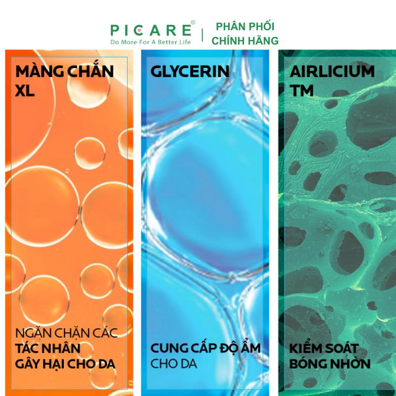 – Kiểm soát bã nhờn hiệu quả với hoạt chất Airlicium – chứa các vi hạt siêu nhỏ có khả năng tan chảy và thẩm thấu ngay lập tức vào da, hấp thụ bã nhờn & mồ hôi vượt trội gấp 100 lần khối lượng, từ đó giúp kiểm soát mọi nguyên nhân dẫn đến tình trạng da bóng nhờn (bã nhờn, mồ hôi và độ ẩm), duy trì làn da khô ráo & thoáng mịn.