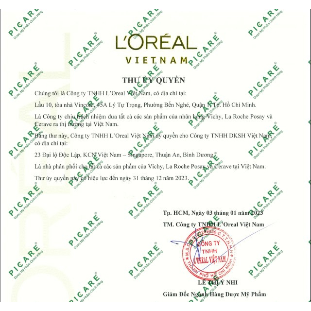 Nhập khẩu bởi: Công ty TNHH L’Oréal Việt Nam