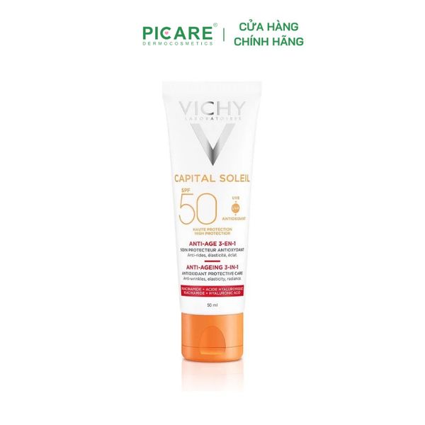 VICHY KEM CHỐNG NẮNG CHỐNG LÃO HÓA CAPITAL SOLEIL ANTI-AGEING 3-IN-1 SPF50 – 50ML