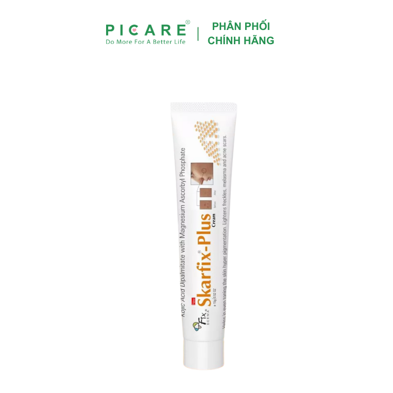 Fixderma Skarfix Plus là kem dưỡng da chuyên biệt hỗ trợ làm mờ thâm nám, cải thiện sắc tố da không đều màu. Với công thức kết hợp Kojic Acid Dipalmitate và dẫn xuất Vitamin C, sản phẩm giúp giảm sản sinh melanin, thúc đẩy tái tạo làn da đều màu, tươi sáng và khỏe mạnh – Picare là nhà phân phối chính hãng sản phẩm Fixderma tại Việt Nam.