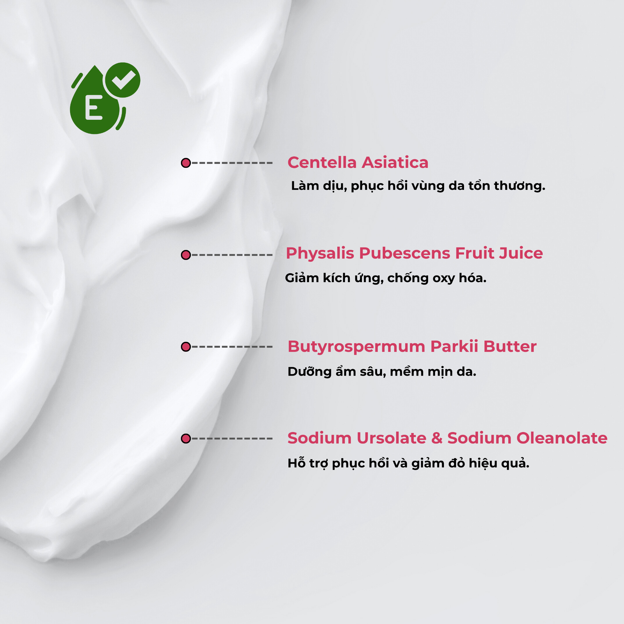 Sodium Ursolate & Sodium Oleanolate: cải thiện và giảm đỏ hiệu quả.