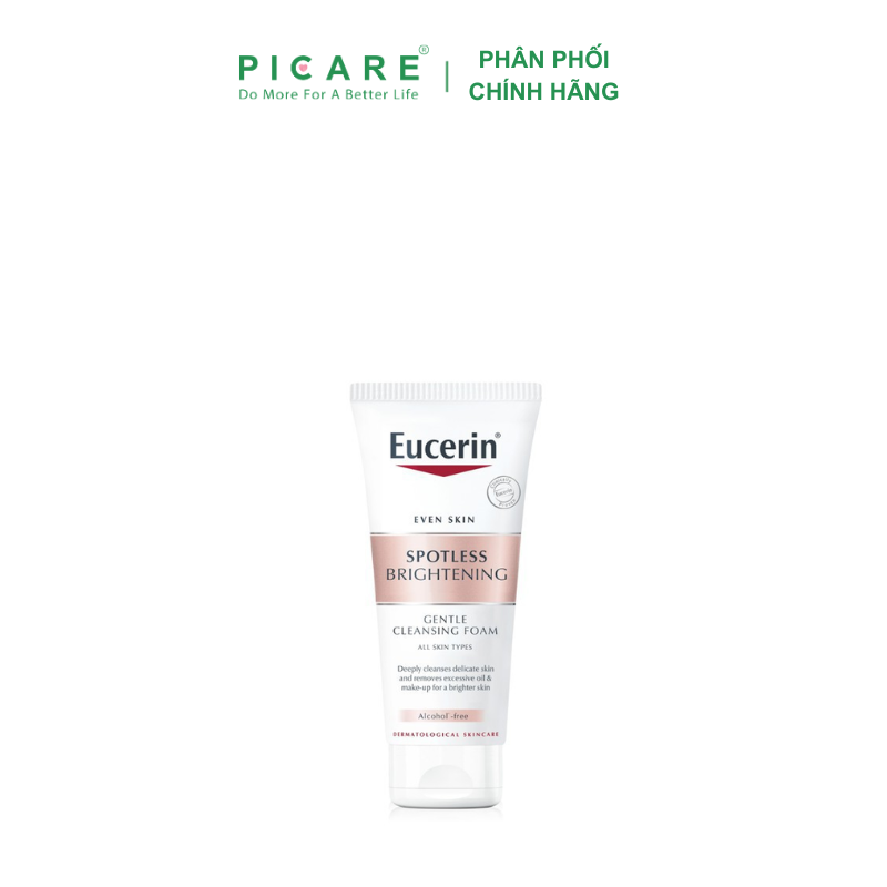 - Sữa Rửa Mặt Trắng Da Eucerin Cleasing Foam giúp làm sạch sâu, dịu nhẹ và hỗ trợ làm sáng da, giảm đốm nâu, tàn nhang