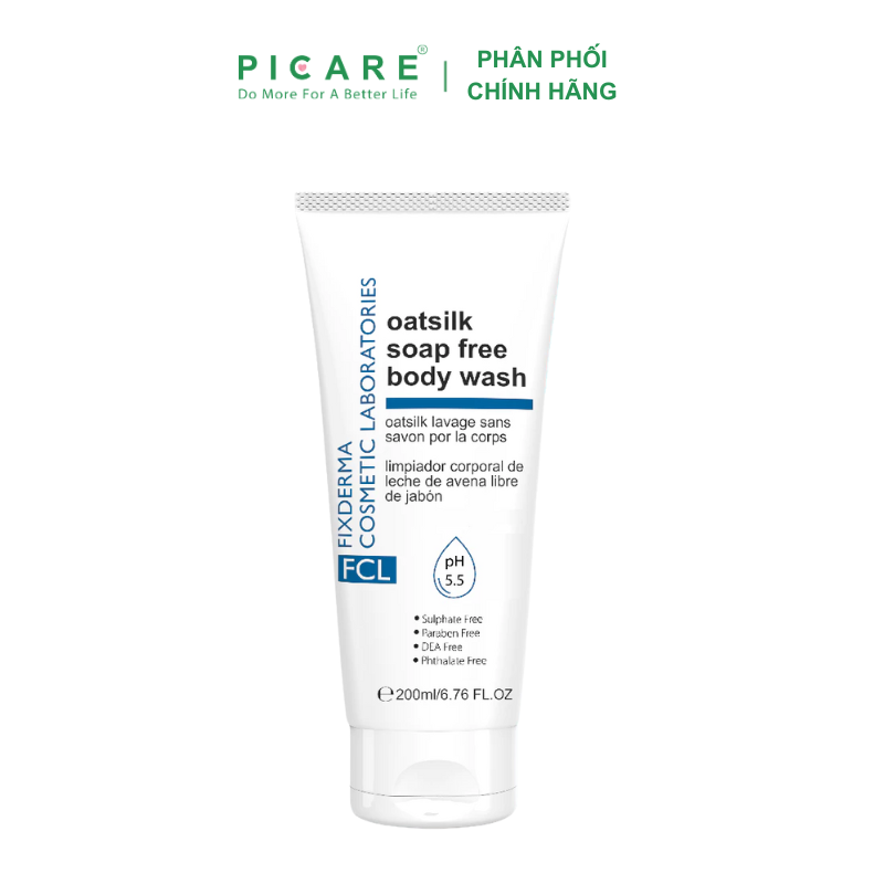 FCL Oatsilk Soap Free Body Wash giúp làm mềm mịn, dưỡng ẩm, Giúp duy trì pH tự nhiên cho da, phù hợp cho da khô, ngứa, nhạy cảm. - Picare là nhà phân phối chính hãng của Fixderma tại Việt Nam.